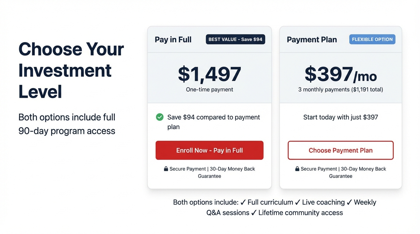 ✓ 90-Day Full Access | ✓ Live Q&A Sessions | ✓ Implementation Support