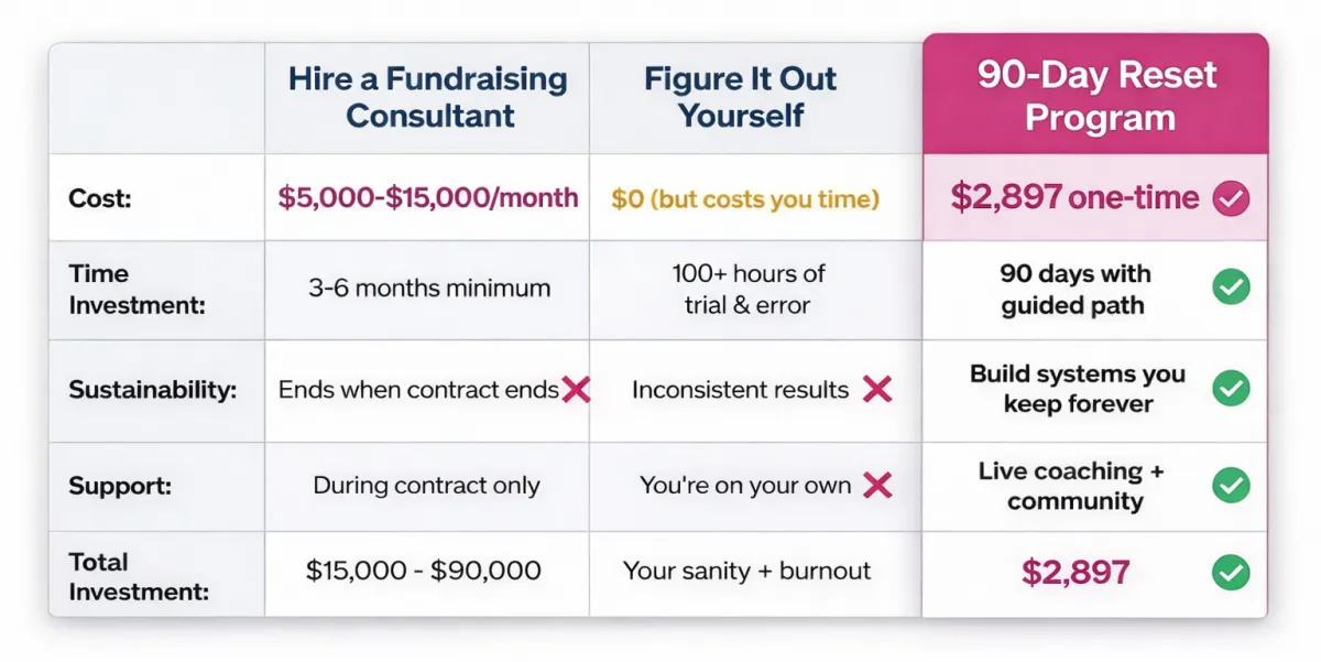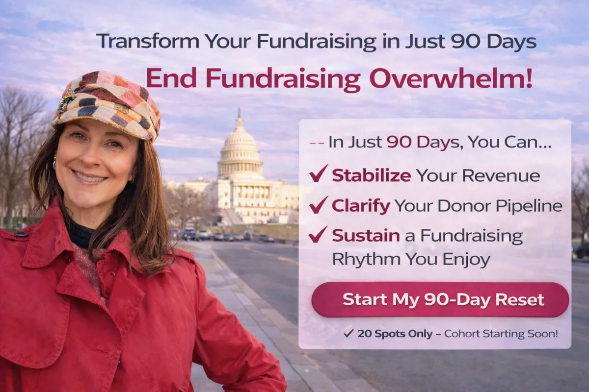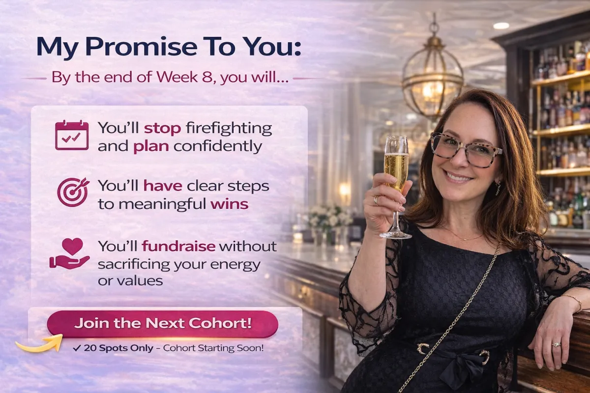 After 20+ years leading nonprofit fundraising, I saw leaders burning out while chasing inconsistent results. So I created this Reset to give you a step-by-step, sustainable, human-centered approach that shifts you from reactive to confident fundraising — without sacrificing your well-being.